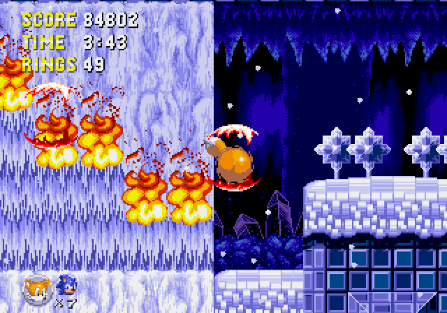 Given the game’s ability to closely emulate the Mega Drive games, it makes sense that someone would eventually take this to its logical conclusion with a 16-bit styled fan game. Developed over the course of five years by a large team led by composer/programmer Noah Copeland (which includes regular HG101 artist Dee Liteyears), Sonic Triple Trouble 16-Bit expands on the original game with entirely new level designs, completely redone Special Stages where you face against Nack in psuedo-3D stages, and the ability to swap between Sonic and Tails at any time.