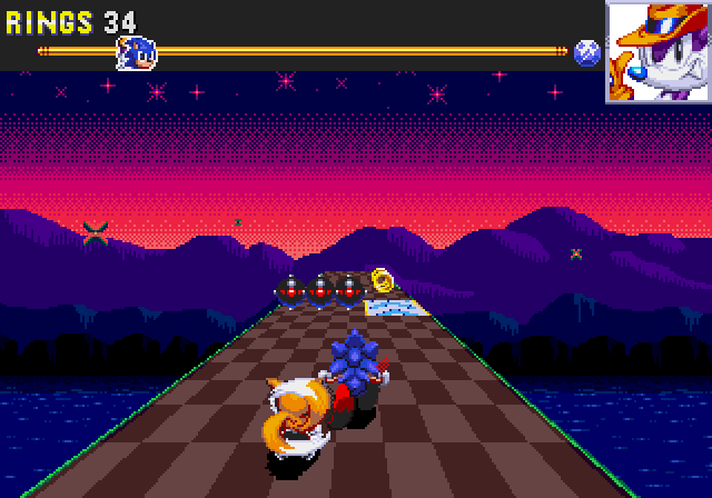 Sonic and now Tails can access the Special Stages, which are a mix of platforming challenges where you have reach the end before time runs out and psuedo-3D Tornado challenges where you have to collect a certain amount of rings. The latter are pretty terrible, since you move very slowly and the lack of a detailed background makes it difficult to tell where you’re meant to be to collect the rings.