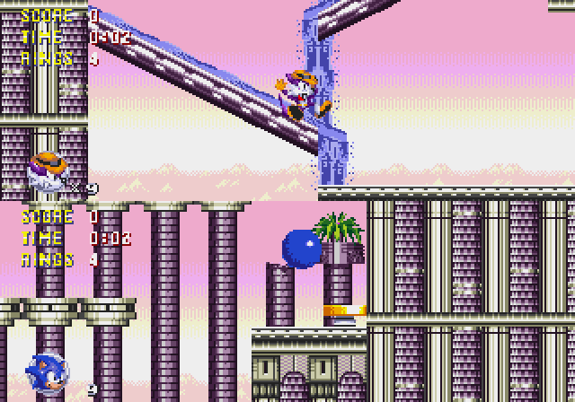 The graphics are a bit of a mixed big. On the one hand, there is a much better use of art direction to create distinct moods, with the color palettes in levels being unique enough that they’re almost comparable to those seen in Sonic CD. However, the push for even more detailed characters and level tiles means that the framerate slows down much more noticeably than before.