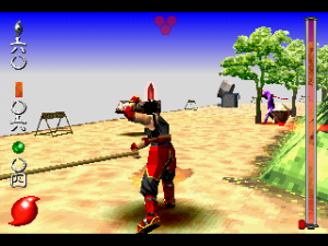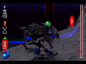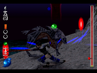 Each of the five characters have their own element – Wood, Water, Fire, Metal, and Earth – which makes them more or less effective against certain enemies. Each level takes place in a different part of Japan, where the ultimate goal is to find and beat the level boss. However, you can’t just march right to them, but instead need to scour the area to find and destroy crystals, eventually filling up the gauge on the side of the screen and allowing you access to the boss fight. Destroyed enemies also yield crystals called Materia (different from the Materia in Square’s other big-name PlayStation RPG), which can allow you to use super powerful moves.