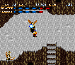 90% of the sound effects in this game are ripped straight from ActRaiser. These effects were pretty lousy in that game, but they somehow seem even more out of place here. The hero makes the same deep, manly grunt as the hero from ActRaiser when he gets hit, which clashes somewhat with his young, boyish appearance. The sword slashing sound (SWIP! SWIP! SWIP!) is also notoriously annoying.