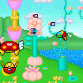 The trippy backgrounds are a trademark of Space Harrier. The ground consists of a flat checkerboard which changes color every stage. The sky switches between from bright blue to the yellow of dusk, to the pink atmosphere of some otherworldly planet. Across the horizons are alien buildings and landscapes which fall and rise after the completion of each stage. A few levels even feature a ceiling, giving a hallucinatory feeling of claustrophobia. There are 18 stages total.