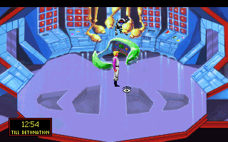 The plot remains unchanged in the remake, and only a few of the puzzles have been slightly altered due to the new interface. In some ways, though, more could’ve been done to fix it up for the re-release. Compared to the free roaming worlds of King’s Quest and Leisure Suit Larry, Space Quest is awfully short and linear. This is actually a blessing in disguise, since there are quite a few instances where you can miss a vital item and find yourself in an unwinnable situation. Before you escape from the Arcada, you’d better make sure to grab the gadget by the spacesuit, which will translate the gibberish spoken by the hologram you find underground in Kerona. And whatever you do, don’t accept the first offer from the spaceship salesman in Ulence Flats. You’re supposed to reject the first offer, so that way he throws in a jetpack as a free bonus when he tries a second time. You obviously need this jetpack for the final sequence – it’s a right old bit of Sierra-style trickery.