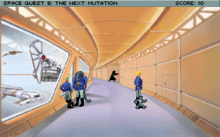 Space Quest V feels remarkably different from its predecessors, for a number of reasons. For starters, it was developed by the team known as Dynamix, who had been acquired by Sierra a few years before. They were known for other adventure games like Heart of China, Rise of the Dragon, and The Adventures of Willy Beamish, but it was their first (and only) title using the SCI engine. The difference is most notable in the art style, which has changed from the other VGA games. It has more of a retro comic book feel, which fits in with the cheesy sci-fi theme.