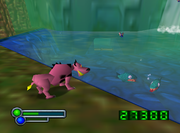 There was a beta version shown at E3 in 1997, or rather it was meant to be shown but apparently couldn’t get working. There was however a video of it, distributed on CD via EDGE magazine, and is now on YouTube. It shows several controllable animals which never made the final cut. The rocket foxes made it into the final level of the Europe Zone, as boss enemies, but you couldn’t control one. The pink rabbit, frog, and others however, don’t show up at all. Below is a gallery from this video.