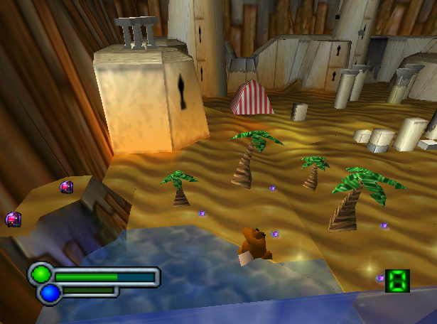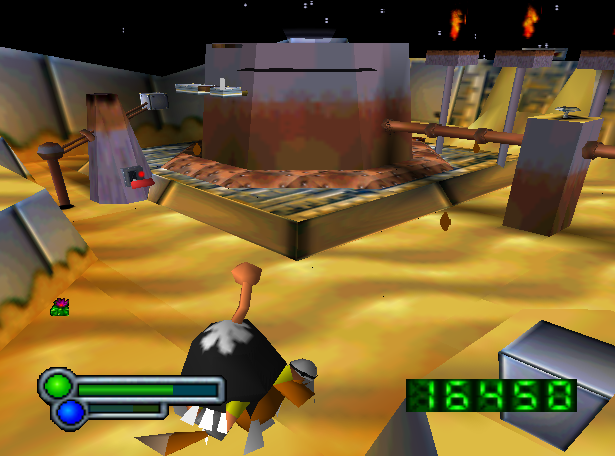 The game is divided between four main zones: European (woodland, farms, etc), Ice, Jungle and Desert, which are all self explanatory. Each of these is sub-divided into 10, 7, 6 and 7 levels respectively, in addition to the final confrontation and a secret bonus area, for a total of 32 levels. Progression is simple: every level has a teleportation pad and a number of mission objectives, and completing the objective activates the teleporter. This is where the fun begins!