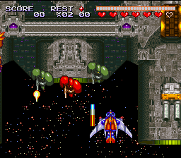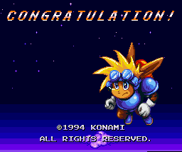 The SNES Sparkster title plays almost exactly the same as its Genesis predecessor, but tweaks various elements enough to feel like a different game. This title was directed by Hideo Ueda, who also worked on the X68000 version of Akumajou Dracula (Castlevania), as well as Axelay.