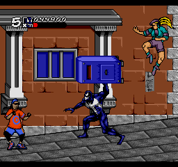Though their moveset is otherwise identical, Venom is stronger and has more reach, while Spider-Man’s faster. The game will let you choose between them at different points, sometimes resulting in alternate paths. At one point, picking Venom after he’s been captured by Carnage leads to a cutscene where he gets tortured while a CPU-controlled Spider-Man kicks ass on New York rooftops, skipping a few levels entirely. During the epic, multi-part final battle you actually get to switch between both at a button press, a unique mechanic in the genre.