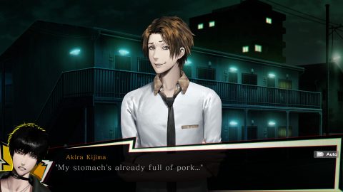 Kakuya’s deadline isn’t just a single night, allowing Akira’s party to regroup and make sense of their clues over the course of several days. This makes for many more quiet moments, and the smaller, tightly knit cast is to NG‘s benefit. Each character is a constant present throughout the duration of the game – that is, as long as they’re kept alive – allowing the player to really get to know them. This is complemented by the Judging system, an opportunity for the player to decide Akira’s mood in reaction to certain dialogue. It’s ultimately just for flavor; maintaining positive relationships doesn’t affect the story directly, though it is an effective immersion tool. One can see a smidge of modern Persona influence in NG; not only through the emphasis on character relationships, but especially from the game’s presentation: stylized with jagged black edges and highlighted in bright yellow, the UI is all but lifted from Persona 4.