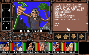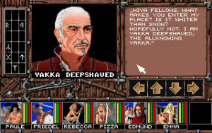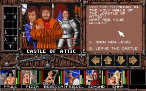 The Realms of Arkania games themselves contain quite a few references to personalities and events in the real world (and other fictional ones), but those are nothing compared to the “stolen” faces in Spirit of Adventure. To the left are the creators of the game as the lords in “The Castle of Attic,” expansive comparisons for all the games can be found in our feature Tracing the Influence. There are also many more pop culture references to be found in text form (not few of which have been lost in translation and/or didn’t age quite as well as the visual ones).