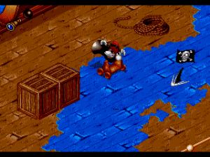 Given the new perspective, this makes combat a huge pain. Just like Cool Spot, enemies take entirely too many hits to kill, and a lot of them will only take damage if you fire at them on the side they’re firing back at you from. The perspective makes it where you’re aiming isn’t entirely clear, either, so your shots might end up missing the enemy entirely. At least most of the enemies in Cool Spot were nice enough to stay still. Here, they’ll either move around so much you can barely hit them, or start chasing you around so much you’ll barely even get a chance to hit them. You can’t even just try to run past the enemies, either, because some of them might be holding the cool points you need to actually progress. It just makes it feel like every enemy you come across is some kind of roadblock that brings the game to a screeching halt, all the while draining your steadily plummeting health.