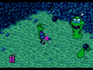 The game itself looks pretty good, and the game’s been massively stepped up in graphical variety since Cool Spot. Every level actually looks completely unique, although every world shares the same enemies. Spot himself animates as smoothly as he did in Cool Spot, with a heavily shaded style to him. The enemies, on the other hand, are toon-styled drawings. It honestly makes the game look a little inconsistent, given how wildly different two sprites from the same game can look. The music, sadly, isn’t quite as good as the music from Cool Spot, and there aren’t any tracks that can quite match up to the awesomeness of the bonus stage from Cool Spot.