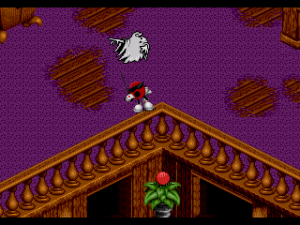 The level design still isn’t great, although it’s been improved from Cool Spot. A lot of levels have more than a few big, wide open spaces, along with corridors that don’t actually have anything in them. Sure, there’ll be a few items for enemies in them, but it still makes the levels feel more empty than they should be. The levels are generally a little bigger than Cool Spot, partly since there’s doors Spot can go through that lead to new areas. There’s actually quite a few secret areas, too, which helps give you a reason to explore. There’s not much in these besides some point items and maybe a cool point or two, but they’re worth seeking out. There’s even a few minor puzzles involved, like one where you’ll have to jump on stone switches in the right order to put out a fireplace. Nothing that would challenge the sort of people who actually play these games, but it’s still nice.