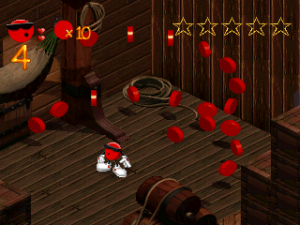 The game itself controls and plays a lot like Cool Spot. You’re told to get a certain percentage of cool points, and then to find the exit. The cool spots aren’t quite as numerous as they were in Cool Spot, so you’ll usually only be asked to find ten or twenty of them, instead of fifty or more. The problem is that the cool points tend to be harder to find this time around, so it all amounts to the same amount of wandering. Spot controls more or less exactly the same, as well, and he still fires the same energy/ice/whatever shots. What’s nice, however, is that he no longer takes about five whole seconds to start moving at a decent speed. In fact, there’s actually a run button now, which you’ll want to use for all the backtracking the game’s going to make you do. Spot can take still take quite a few hits, but the health pickups are way too rare, and they barely heal back any damage.