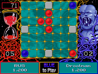 The rules of this game originally sprang from a game called Infection, released in 1988 and developed by Dave Crummack and Craig Galley. Here, the chips were meant to be cells. The original publisher was Wise Owl Software, who sold the rights to Virgin Mastertronic UK. They then sold the rights to The Leland Corporation, who created an arcade version called Ataxx. This version is more gory and features an assortment of monsters, as well as a timer. At the same time, the US branch of Virgin got the rights to the game, and that’s how Spot came to be. Spot was overseen by Graeme Norton, who also went on to be one of the minds behind The 7th Guest. When programming the game, he reimplemented the ruleset and turned it into the Microscope puzzle. Like its original iteration, the chips are now cells. It’s regarded as the most infamous puzzle in the game because of its overt difficulty. The iOS port of The 7th Guest is missing this puzzle, but instead was redone and released separately as an iPad-only game, under the name The 7th Guest: Infection.