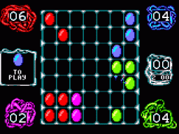 The Game Boy version is pretty cut down compared to the other versions. You can only have two players, which is understandable, given that you have to tell who the players are by what shade of grey they are. They’ve also removed nearly all the Spot animation, so whenever you move a piece, it just kind of “goops” over to where you place it. The only place Spot actually shows up is on the title screen and whenever it’s your turn, where he does a flip. On the bright side, there’s a really cool song that plays when the game waits for you to make a move, one exclusive to this version. The song goes on for quite a while, and it has a very Follins-esque sound to it. Problem is it stops every time you actually make a move, so the best part of the game is actually not playing it at all.