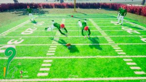 The game is a mixture of chaotic and goal-driven. Simply by exploring the world, you can find yourself in all sorts of wacky situations, like carrying a football (that’s 🏈, not ⚽ for the non-American readers) while players launch themselves at you, desperately trying to prevent a squirrel from scoring a touchdown. Or trying to dunk a basketball in a hoop that keeps moving around and changing in size.