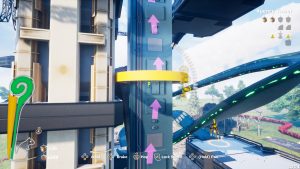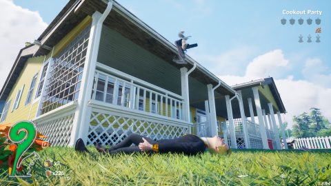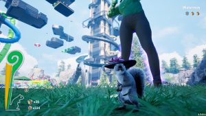 If you need help figuring out where the goals are in this unusual suburb, each area has a flagpole you can climb, giving you a view which highlights all the area’s collectibles and gives you their names. If you haven’t figured out by goofing around that tripping the jogger gives you a golden acorn, then seeing the label “Jogger Stopper” might help. Many golden acorns are the sort of thing you could earn on your own simply through exploration and experimentation, but the game has these Super Mario Odyssey style hints in case you need them.