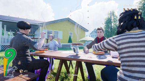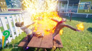 It’s also a game in which that same squirrel then goes into the backyard where a cookout party is being held, uses a bomb to ignite a propane tank underneath a grill of undercooked burger patties to blast the now-cooked patties across the lawn, finds each patty and places them on one burger after another in front of impatient party guests in order to earn a golden acorn – the game’s equivalent of the stars or moons from the open world Super Mario games. Before stealing their birthday cake and running away with it to give it to a crying man wearing a party hat to earn another golden acorn. Are you good? Are you bad? Maybe both?
