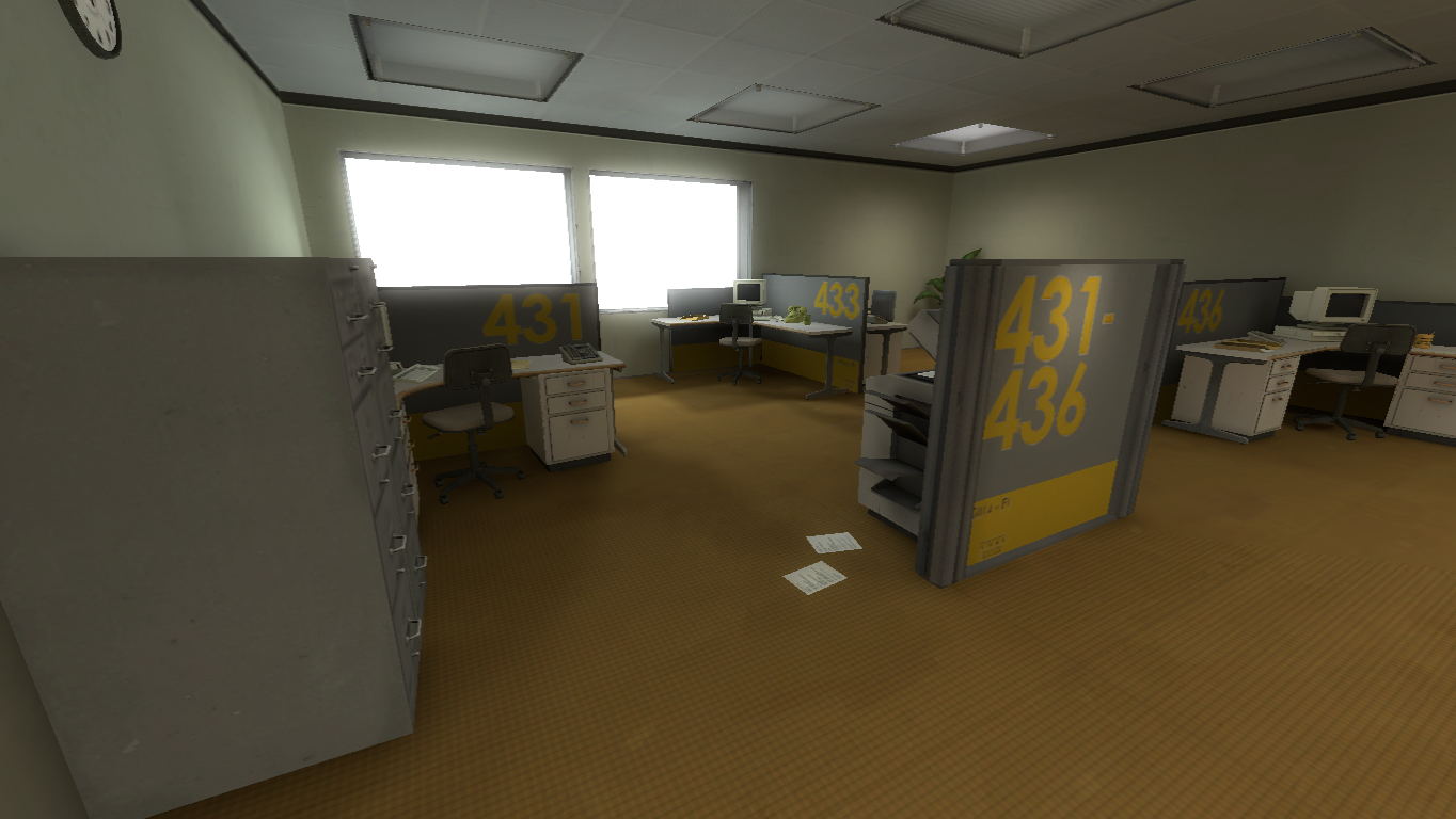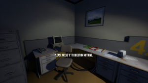 The game starts out very simply, with the narrator telling you that all of Stanley’s fellow office drones have disappeared, then guides you from there. Listening to all his instructions plays out a simplistic and drab story where Stanley, an office drone, discovers he was under the influence of his evil boss’ mind control machine and destroys it, then gets freedom from the office, showing his desire to choose for himself – with the obvious irony being that this ending only occurs if you do everything the mysterious voice tells you to do. Where the real interesting stuff happens is when you choose to do things a little differently.