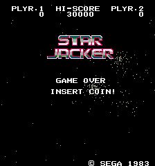 Like many of Sega’s early and simple games, Star Jacker made it to their SG-1000 console with a reasonably accurate translation, though with a few different points from the arcade. The most noticeable change is that you start out with four ships instead of three, giving you a slight offensive advantage early on. The graphics are obviously simplified but make a decent enough transition, and while the vertical scrolling is naturally a bit choppy, it’s handled pretty well despite the SG-1000’s low hardware power. The sound is relatively close to the original and even keeps the tune change depending on your location. The enemy placements are a bit different and the game isn’t really more or less difficult than the arcade version, though the extra ship you get at the beginning can be helpful. It’s usually quite difficult to screw up a home transition of a relatively simplistic game (Atari 2600 Pac-Man notwithstanding), and the straightforward Star Jacker‘s only known console port turns out quite well and faithful to the arcade original.