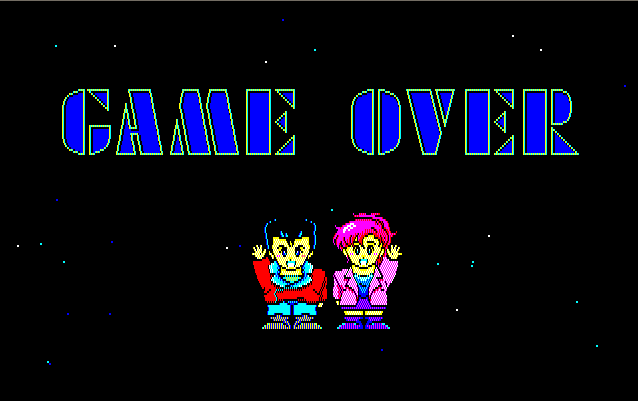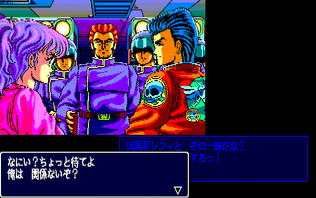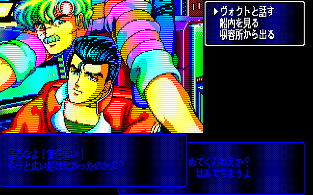 Whenever you fly between space station, you get to play an action scene. The PC88 wasn’t exactly a graphical powerhouse, so the scrolling is choppy and distracting. But that’s only a minor issue – the bigger problem are the annoyingly aggressive enemies. They come from all sides, without warning, unleashing torrents of minuscule bullets or even careening straight into your ship for a kamikaze attack.