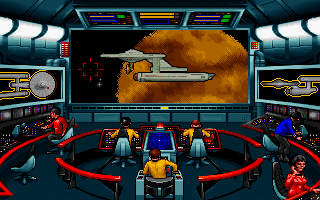 While the point-and-click adventure segments occupy the bulk of the game, there are also some space combat sequences. They look and feel quite similar to Origin’s Wing Commander, depicting ships as 2D bitmaps in 3D space. Compared to that game’s light fighters, the USS Enterprise is obviously much bulkier, as are most of the enemies you’ll face, so the action isn’t quite as fast. You can issue commands to your various crew members to raise shields and so forth. Although long time adventure game fans tend to grumble at the presence of action sequences, the ones in Star Trek 25th Anniversary are surprisingly well executed. They aren’t overwhelmingly difficult either, save for the final encounter, because the Enterprise can take quite a bit of damage.
