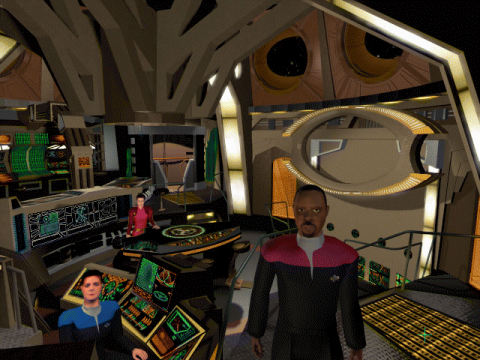 Star Trek: Deep Space Nine: Harbinger has three things working against it. First off, obviously, it’s based on Star Trek: Deep Space Nine, which even as a TV series is far less interesting than either of the series that preceded it. Secondly, instead of directly controlling any of the main cast members, you take on the role of a completely original character. You still interact with most of the regular crew, including Sisko, the stoic captain; Odo, the shape shifting Changeling; Quark, the Ferengi; Kira Nerys, the Bajoran; and Jadzia Dax, the Trill. Their voices are provided by the original actors, like the other games, but their readings are dry and incredibly boring. But most importantly, Harbinger ditches the third person perspective of the other games for a first person perspective, entirely comprised of computer rendered graphics. The backgrounds are incredibly dull and navigation is extremely difficult, while the character models look really, really bad. And while the puzzles of the earlier games were hardly noteworthy, they’re still much better executed than they are here, where they mostly involve fiddling with circuits, panels and computers, as there’s no inventory whatsoever. The exploration is also broken up by extremely banal rail-shooter action sequences, which are only tolerable because you can adjust their difficulty. Overall, it’s a boring, pointless game, and one that’s hard to recommend even to Trekkies.