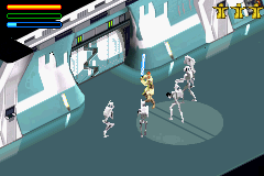 There are big graphical differences between the three versions, starting from a totally different lighting setup. Environmentally, the PlayStation title is the only one allowing you to destroy “computer platforms”in exchange for extra points but this might be the only win for this version since, for example, the Dreamcast game looks “cleaner” and fixes much more important elements like many platforming sections. As for the enemies, the first two games feature many different types of droids including the Destroyer Droids and in the Game Boy Advance version this last type do not have Force Fields to protect them.The mid-boss is a Loader Droid while the final boss is a Starfighter Droid who can transform in a way that makes it more adapt to infantry combat. This final boss also allows you to somehow master your deflecting ability in the most hardcore way, if you want to avoid countless deaths.