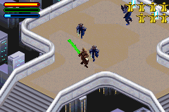 The sixth level is Coruscant and scenarios are pretty similar to each other with an honorable mention to be given to the Game Boy Advance version thanks to the beautiful retro futuristic aesthetic of the skyscrapers. Designers did a good job as for the enemies’ variety in this scenario. It is an interesting level but also one of the longest and the grind can be sometimes frustrating. However, we also witness some funny glitches that will make this fatigue easier to bear like mercenaries timely suiciding themselves in impossible ways or frantically running while standing still in the same spot.The final fight against the Mercenary Leader is interesting, with a lot of martial arts and teleporting involved.