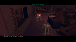 Goto – A crime lord looking for jedi, who joins you via a remote controlled droid after Nar Shaddaa. He’s a patriot who wants to keep the Republic alive and stable, despite his constant string of horrible acts. He does what he believes needs to be done, but doesn’t care for excessive goodness or cruelty, like Kreia. He can also hack other drones.