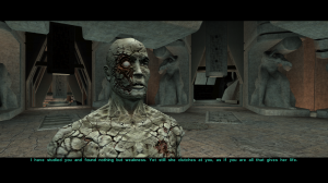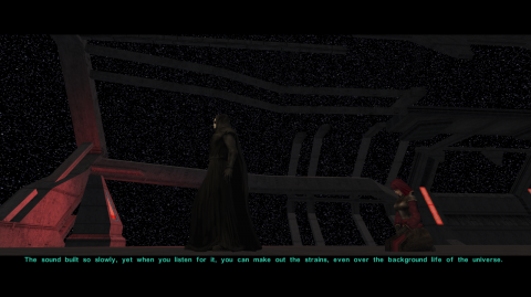 KOTOR 2 is a vastly different game in the narrative, trading the enthusiastic fanboyish celebration for a critical and darker tone. There’s still plenty of jokes, but usually with a grim tint to it, and when the game does get serious, it goes to some genuinely shocking places for this franchise. Hanharr and Atton alone have some bombshells you’d never see in the age of Disney. It’s also a darkness earned, changing the old game’s flopped take on redemption to absence and emptiness. Everyone in the game is some sort of broken person, or one that has yet to figure out who they’re supposed to be. This extends to the exile, as they fail to even understand themselves, no matter which alignment you end up in. The central villains are horrific physical embodiments of this, and the conflicts on every world now revolve around misunderstandings, pre-judgments, and a fear of losing one’s identity. The surprising part is that the game wraps so far into this that the whole experience becomes both a deconstruction of RPGs and the Star Wars mythos itself, with tons of discussions about the endless cycle of the Jedi and Sith warring.