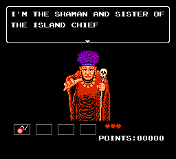 The shaman of the Coralcola is the chief’s sister. She’s basically there to revive Mike when he runs out of lives.