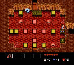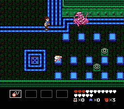 Though the dungeons are set out in a linear fashion, they are sometimes rather sizable and often filled with hidden rooms, false exits, traps, and special switches. Switches are found by jumping on a series of blocks – once to make the switch appear, then again to activate it. These do things like opening doors, materializing items, and dropping bosses to their doom a la Koopa from Super Mario Bros.