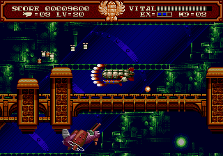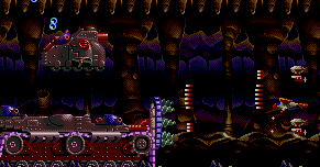 The level designs and enemy patterns have been adjusted to take into account the smaller screen. With this, many of the bosses have been redesigned. For example, the train at the end of the first level originally had a huge cannon on its last car, which is missing from the portable release. The final boss is completely different – the Genesis version has a small ship which uses a variety of flame attacks, while the portable version has an orb shaped vessel that’s more visually consistent with the rest of the bosses in the game. Despite the efforts to rebalance, it still feels cramped, and ends up feeling more difficult than its console counterpart.