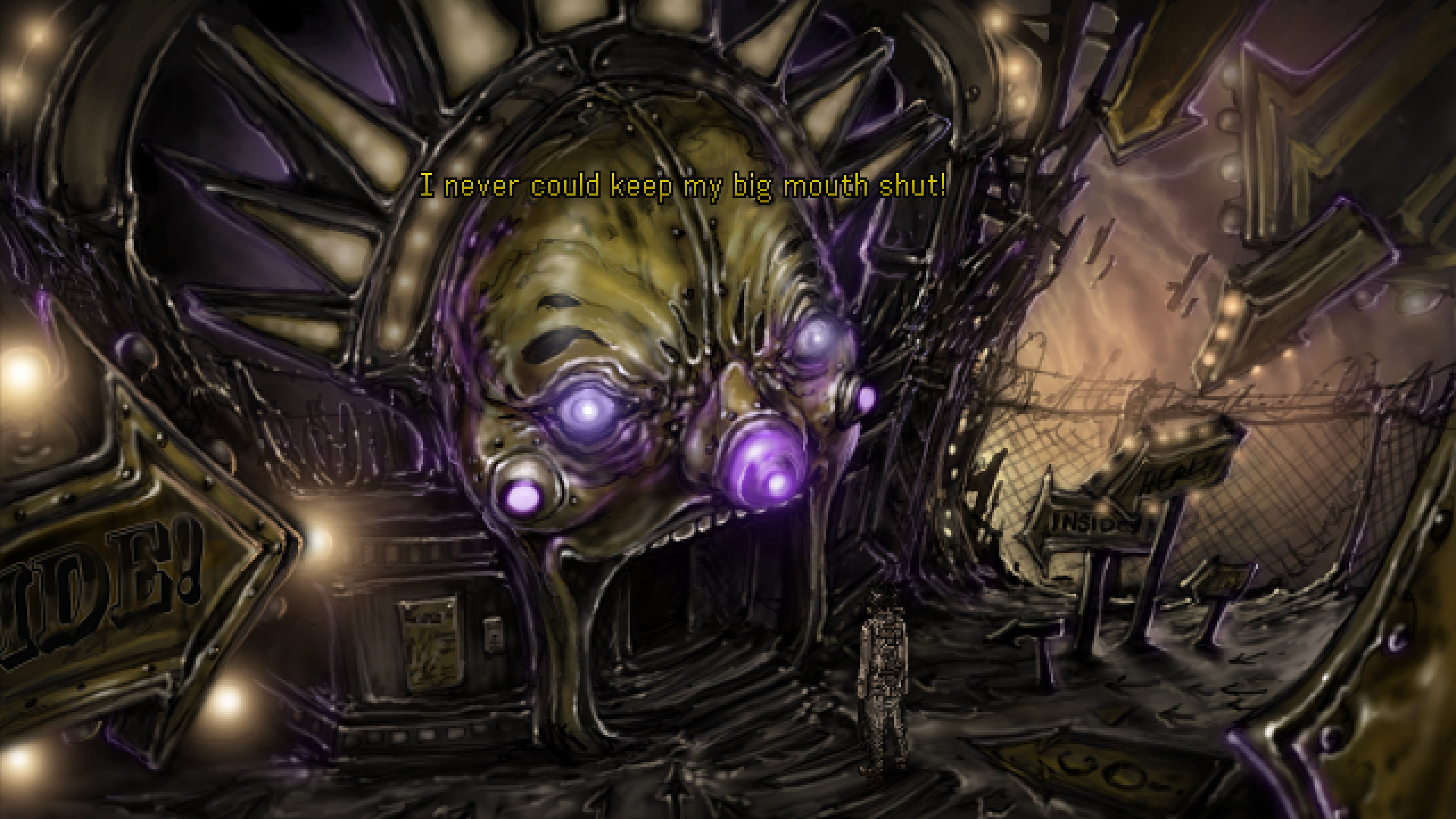 The last time we saw Wormwood do a joint with Wadjet Eye, we got 2012’s Primordia, a striking point and click about robots at the end of the world. The small team’s art reminded one of the work of H.R Giger, and one would hope their next project would be about humans to take advantage of the body horror they could tap into. That has happened with 2021’s Strangeland, but it’s also a VERY different experience then you may have expected. What this is instead is a very personal project about death, memory, relationships, and possibly a lot more. They also got Mike Pollock, the voice of Dr. Eggman himself, to voice a giant clown head who you have to step into the mouth of to proceed to the titular Strangeland, and also said giant clown head makes you listen to a dark joke every time you die.