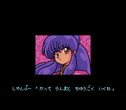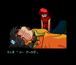 Ranma’s insensitive, selfish oaf of a father. He was his son’s instructor in Musabetsu Kakuto Ryu, though Ranma’s skills have long since exceeded his own. Genma transforms into a panda when he comes in contact with cold water, but he seems to have a much more lackadaisical attitude towards his predicament than the other cast members with Jusenkyo curses. Since he is voiceless in his panda form, he communicates with written signs à la Wile E. Coyote. Chōnai Gekitōhen features Genma’s human form, while the other two games include his panda form. His wish in Chōgi Rambu Hen is to be cured of his baldness.