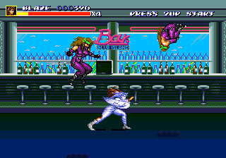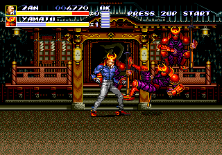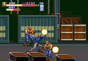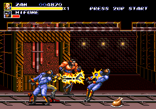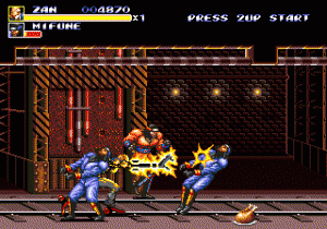 Blitz moves can also be performed at any time if you happen to have a six button controller and know the motions, giving things somewhat more of a ‘fighting game’ feel. Finally, characters now have unique blitz attacks that can be performed with weapons, such as Zan being able to turn them into energy balls to chuck towards foes. Zan himself is a little strange — he doesn’t fall into the usual beat em up archetypes, rather being somewhat of a range-focused, ‘technical’ fighter. With Max’s absence, the game lacks a pure ‘power’ character, which can be disappointing for grappler fans.