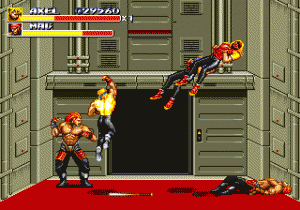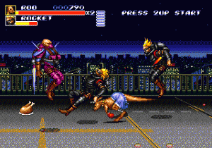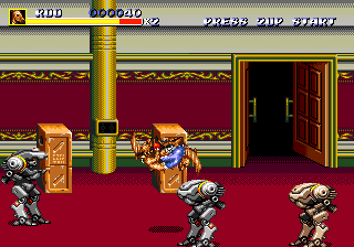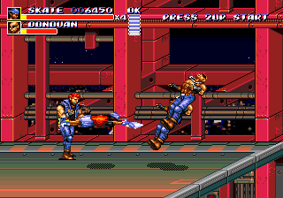 The game actually has two different stories, depending on if you’re playing Streets of Rage 3 or Bare Knuckle III. In the Western version, Mr. X founds the RoboCy Corporation, a front company made to help him further his evil plans. With the help of the roboticist Dr. Dahm, Mr. X begins building robotic duplicates of city officials to replace the real ones. The police, once again, are mostly useless, as they’re dealing with a series of bombs Mr. X has planted around the city to keep them distracted. Dr. Zan, a former RoboCy researcher, learns the truth about Mr. X’s schemes, and joins up with Axel, Blaze, and Skate to beat up a lot of people and stop the Syndicate’s plans once more. This time around, there’s cutscenes with dialogue and still images to help convey the story, as thin as it still generally is.