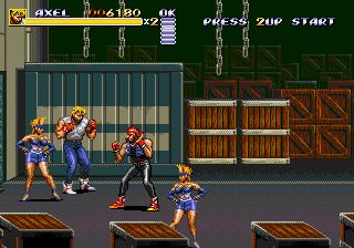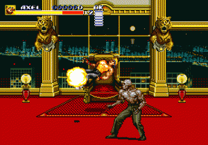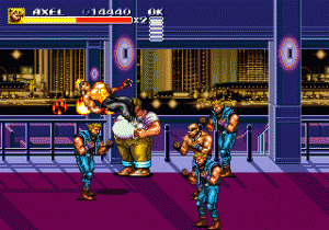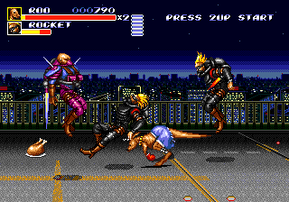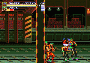 The plot is also entirely different — in BK3, the redundantly named Wook Oak City that the series takes placed in is devastated with a bomb. The Syndicate steals a large quantity of Rakushin, the element the bomb was made from, and kidnaps General Petrov. The Syndicate’s plan boils down to starting a war so they call sell off all the Rakushin. Needless to say, the stakes are a lot higher in this version of the plot — much more than the Western version’s somewhat goofy ‘replace people with robots’ storyline. There’s also some extra cutscenes, such as a brief animation of Axel shattering the screen with a punch during the game’s intro.