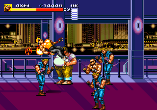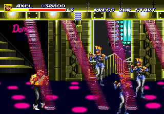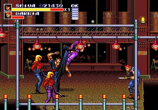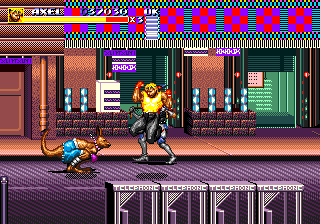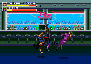 The graphics have a bit more of a dark, gritty look to them this time, since there’s a lot more use of shading in the characters and stages. It’s a pretty good style that sets it apart from the more colorful SoR2, with the entire cast redrawn to feature more shading and realistic features. The music is one of the game’s most divisive elements — Yuzo Koshiro apparently used a series of algorithims to randomly create tracks before editing them. The result is something much more heavy on the trance and techno; whether it works is going to heavily depend on the individual. It’s unique, to be sure, and unlike most anything on the Genesis, but it can be somewhat abrasive at its worst.