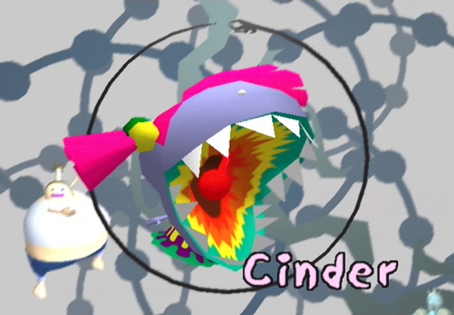An alien-like creature who’s kinda the opposite of Siren. In this battle, there are also numerous little creatures, except they’re on your side. Cyan is technically impervious to your attack, so you need to defend these little guys until they use their attack to solidify her, allowing you to strike successfully.