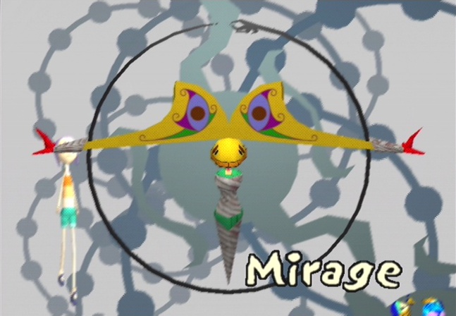 This particular fight takes place in the desert, as Mirage – a big sorta-Egyptian thing shaped like a screw – creates sandstorms to send your way.