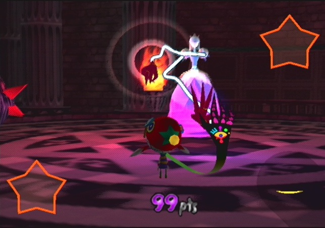 It’s a fantastic concept, in theory, but one has to remember that this is all done in 3D. Trying to target anything specifically is incredibly difficult, because it’s nearly impossible to judge the depth of the scarf’s arms. So it’s usually just easier to just blindly pick and pull at whatever you can get your hands on, which kind of eliminates the point of having so much control over the scarf to begin with. It doesn’t help that both the movement and camera are both awkwardly implemented. This is technically Treasure’s first real 3D game – Sin and Punishment, despite using 3D graphics, still controlled like a 2D game – and it’s clear that they haven’t gotten it quite right. Linda can barely turn, and dodging attacks almost seems like more a matter of chance than a matter of skill.