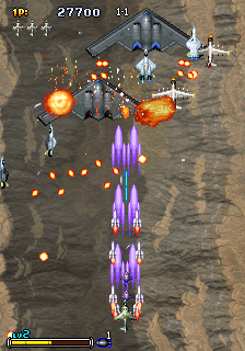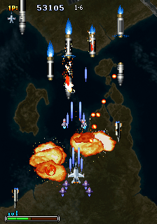 Super Hornet is the modern equivalent of Lightning, having four options always following it, shooting powerful homing missiles, and a bomb that involves looping. The fact that it has the word super in its name may not be a coincidence, due to Lightning’s similarities to Super Ace.