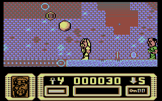 There are also other differences between versions. Both Amiga and DOS have passwords and three difficulty settings (appropriately named “Wimp”, “Mean” and “Macho”), whereas the C64 gives you three continues to complete the entire game and only has one difficulty that is higher than normal, for example the shmup sequence gives you much fewer power-ups. The ending in all games is a single, sad screen with a picture of Shep and a generic text.