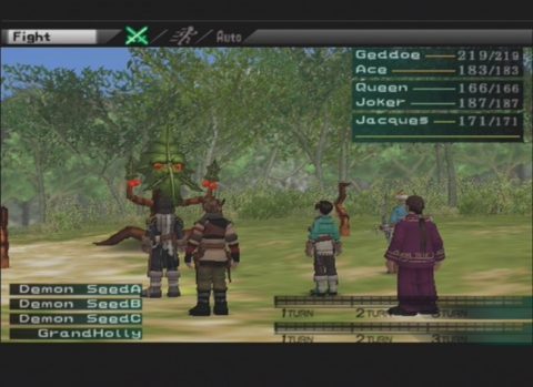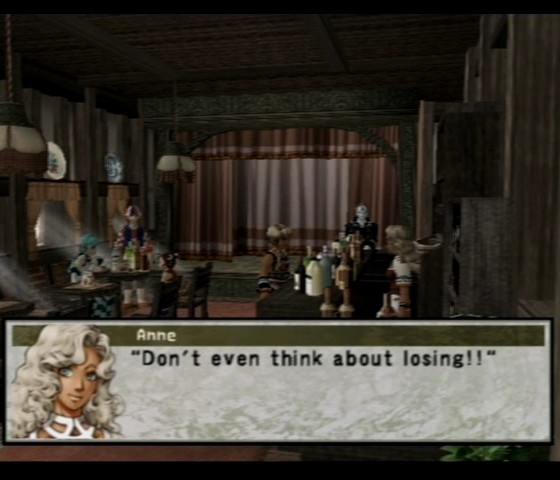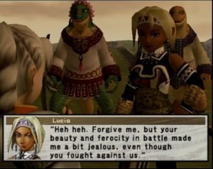 This is not only the first installment for the PlayStation 2, but also the first with fully 3D graphics. The character models are simplistic and their animation is very stiff. However, they generally capture the look and feel of their illustrations. The music style has expanded from the original, replacing some of the Asian influenced music of the original game with more tribal themes, in addition to some standard militaristic orchestrations. The standout theme is played during the gorgeous anime intro sequence, by far the best in the series, a gorgeous vocal piece called “Exceeding Love”, sung in a made-up language by the Japanese musical group Himekami.