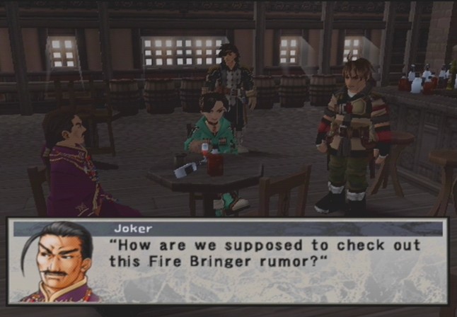 In addition to the three main characters, there are also two chapters that focus on Thomas, the master of your army’s castle. Although not important to the plot – they’re completely optional – they flesh out the storyline from the viewpoint of a civilian. There’s also a minor fifth chapter which lets you play as a dog named Koroku, which lets you listen to some interesting conversations. If you are able to gather all 108 stars, you’ll unlock a bonus where you’ll see how the story unfolds from an outside perspective. The data transfer feature is still present in Suikoden III. If you load up your data from Suikoden II, some of the returning characters will get increased parameters.