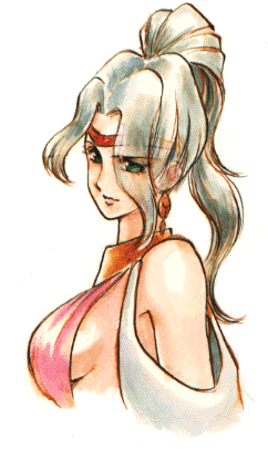 This mysterious woman appears in all five Suikoden games, as well as Suikogaiden and Suikoden Tactics. Through each installment, she appears to be the same age, and tends to wear even more revealing outfits, if that’s possible. She mostly takes on the role of selling and equipping runes. Although she plays a passive role in the first three games, she finally becomes active in battle in the fourth and fifth games. Her past is mysterious, and no one is clear as to why she hasn’t aged.