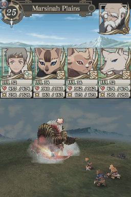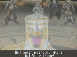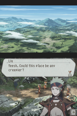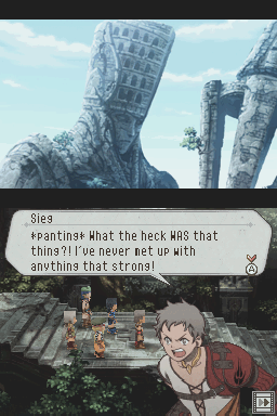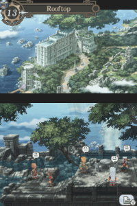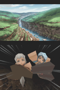 Because Tierkreis was released for the DS, it’s not exactly a pretty game. The standard backgrounds are 2D, but the character graphics and battlegrounds are 3D, which look quite ugly. Given the series’ 2D heritage, it probably would’ve been wiser to mimic the style of the PlayStation games. At least the music, although a bit fuzzy, is solid and there are a handful of themes from the older games. Much of the game is voice acted, which actually works to its detriment. It’s heavily compressed, and the actors speak their lines so quickly that it sounds like everyone is overdosed on caffeine. At least the visuals for the anime cutscenes look great.